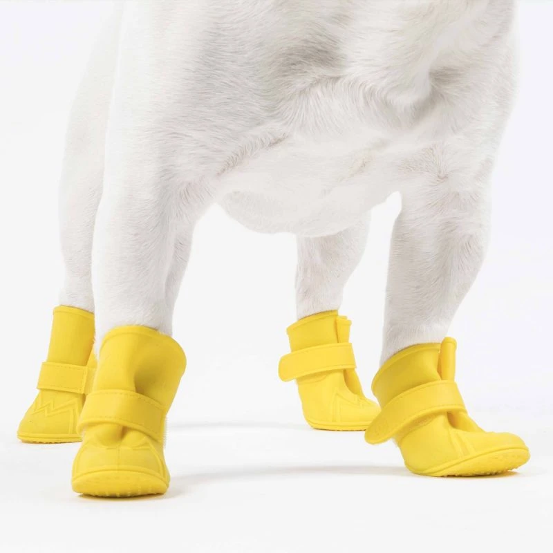 The Canada Pooch Yellow Wellies help protect your dog’s paws from rain and mud. They have a waterproof shell to keep paws dry and clean. They are flexible and comfortable so your dog won’t mind them being on. The easy-on design makes it a snap to get them on even the most finicky dog’s foot and they are easily secured on with a strap. Wellies are great for all seasons and are ideal to have on hand for any messy situation.