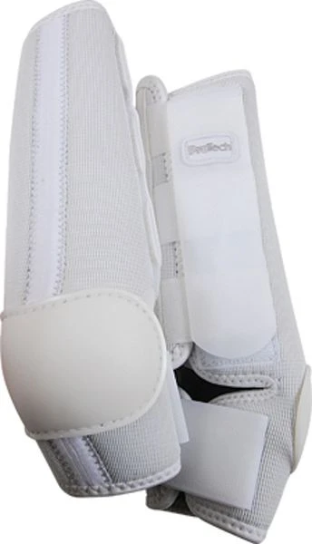 - Body is made of three breathable layers. Outer layer is nylon for durability. Middle layer is perforated neoprene for support. Inner layer is a soft jersey for comfort. Rugged molded shells are stratigically placed for protection of the inner splint area, the tendon area, and the fetlock area. Constructed with darts for a close clean fit and bound with lycra to keep the dirt and debris out. Fastened with a simple but secure, easy on, easy off system of hook-and-loop straps.