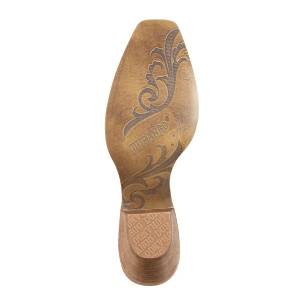 Check out the Crush by Durango Women’s Western boot featuring a removable American flag boot belt, a nice subtle way to show off your American pride. This brown and khaki cowgirl boot is 12 inches tall with a snip toe and a 2 -inch heel. The rubber outsole is comfortable and has a unique tread detailing that adds extra flair even to the underside of your boot. Inside the women’s cowboy boot is a Cushion Flex insole that provides comfort with every step and a tempered steel shank that gives you arch support. There is a soft mesh lining, allowing air to circulate and keeping your feet cool. Wear these Americana cowgirl boots to your next Country music concert or for a ladies night out on the town.