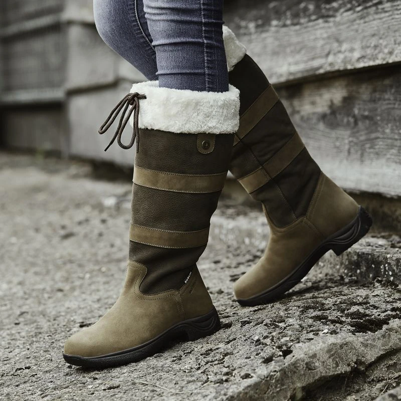 Dublin Eskimo Boots II are waterproof and breathable full grain leather upper country boots with synthetic fleece lining on the shaft of the boot for additional warmth and comfort, perfect for keeping you cozy this winter! The heel, arch support, and double cushioning layer offer great comfort all day long.