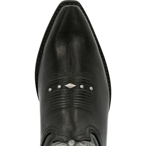 It features a nylon shank, single row sole stitch around the snip toe, rubber outsole with a vintage finish and 2 ½” fashion heel.