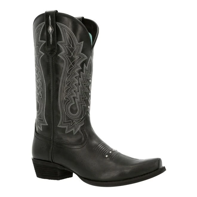 This style is full-grain leather with a faux shaft and beautiful fringe details. It has a soft mesh lining, antiqued silver studs and includes a medial side zipper for easy on/off and the Durango® Sole Comfort Footbed™.