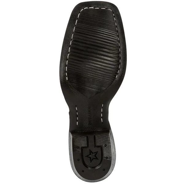 It also features a rolled shank area, slip-resistant rubber outsole, 2″ western heel and square toe.
