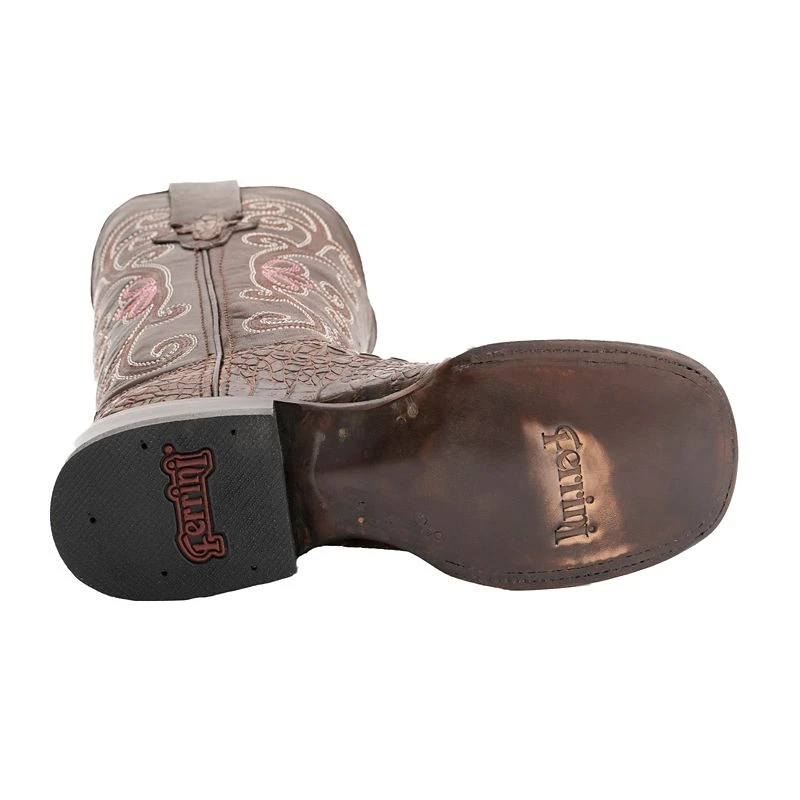 Ferrini Ladies’ Print Caiman Crocodile Boots have been crafted to perfection, and combine classic, Western style with modern functionality. These boots have been designed from premium quality natural leather, and are high on durability and style. They have been lavished with a stunning, glossy finish, while the vamp is decorated with belly crocodile print to add to the visual appeal. Elaborate stitch patterns on the leather shaft with square toes and double-stitched welt construction ensure comfortable, hassle-free use.