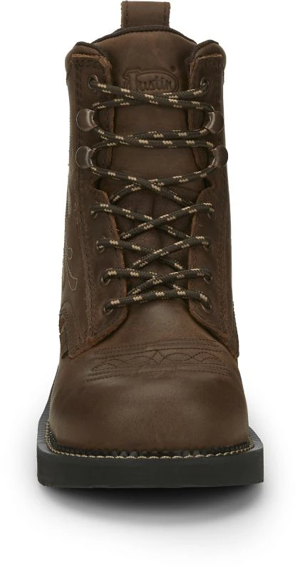 Work hard and look good while doing it in the Justin Gypsy™ Women’s Katerina Waterproof Steel Toe Boot. This 6-inch tall lace-up boot features a golden brown leather exterior with a delicate floral stitch pattern along the quarter for an added feminine touch. It’s built tough with a steel toe and the J-Flex Flexible Comfort System® insole to cushion and support the foot, and guarantee protection and comfort for those long work days.