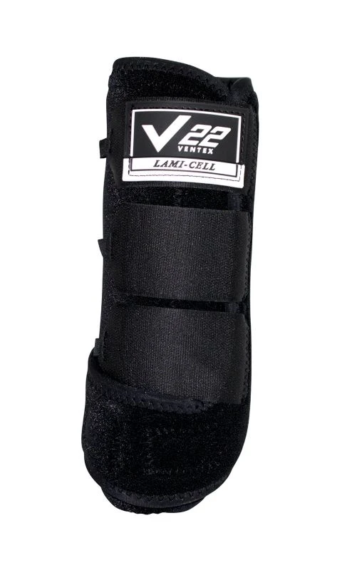 Lightweight and durable Lami-Cell Ventex 22 Boots offer 360 degrees of optimum support and protection. They’re specially designed to help prevent injuries while absorbing shock from hoof impact and helps prevent hyper-extension of the fetlock. Features include patent pending Coolite quick-dry neoprene and a suspensory strap with hook-and-loop closure. Sold per set of two.
