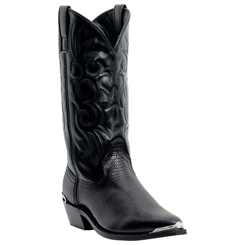 Walk in style and comfort wearing these Laredo Mens Atlanta Snip Toe Boots. Crafted with black lizard print foot leather, it looks prominent with style. The black leather-like top further enriches the outlook of this footwear. Bestowed with the soft cushion insole, it is very much comfortable to wear all day long. An updated J snip toe grants this retro style a thoroughly contemporary look. Sporting classic western style, the cowboy heel adds a very important factor to most cowboy boots enthusiasts. The sueded outsole provides better traction and perfect grip for a stable stride on any terrain.