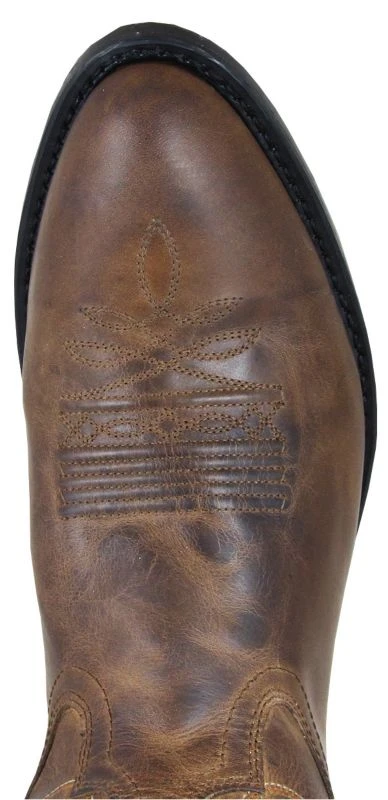 Step out in western style by pairing these Smoky Mountain Denver Round Toe Boots for men with a pair of jeans. Featuring a brown leather upper, these boots will perfectly blend with a modern outfit. The soft leather is also comfortable to wear all day long. On the other hand, the western toe, together with the western heel offers a perfect styling. Made from rubber, the Goodyear welt sole offers the best traction to provide enough grip and firm footing to traverse smooth or tough terrain with ease.