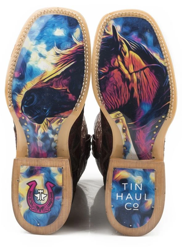 Tin Haul Ladies Boots – A Cute Angle With Colorful Horse Sole