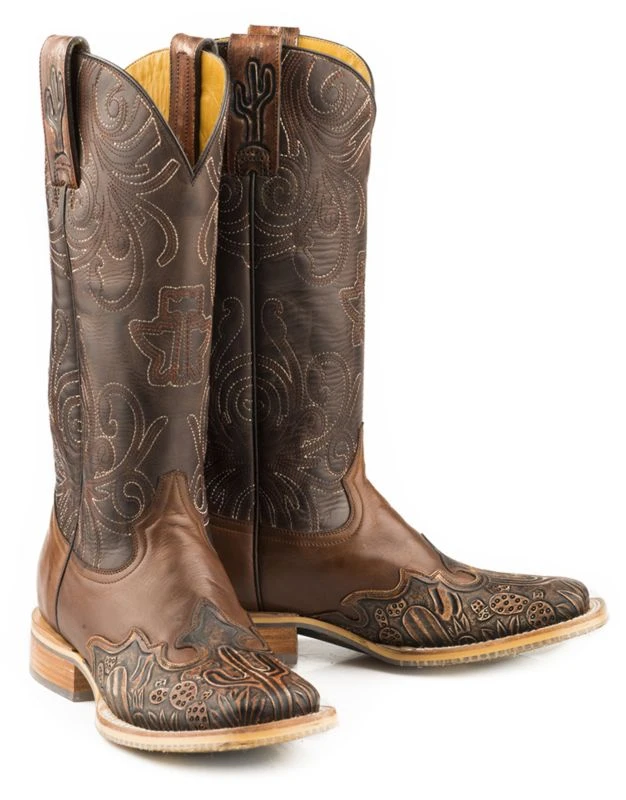 - Brown Vamp With Hand tooled Cactus Wingtip