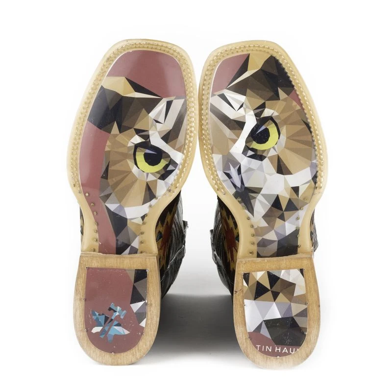 The Tin Haul Womenโs South by Southwest Western Boots are perfect for work and play. These designer cowgirl boots feature a colorful hand painted, hand-tooled vamp, brown embroidered shaft, and is made from premium leather.ย The South by Southwest Cowgirl Boots are handmade with an obvious owl sole and hand-tooled pulls for easy use.