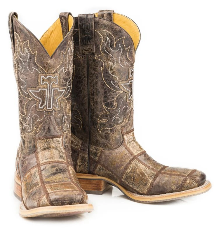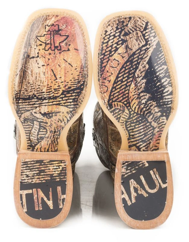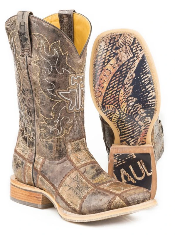 These boots are handmade with double welt, walking heel, cushioned insole and square toe. All leather heel and lining. Graphic obvious sole. 11” H.
