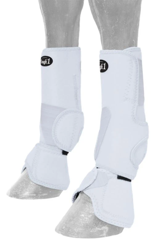 These boots designed for the front have a new and improved design with an even closer contour fit, lightweight, and less bulk. Perforated neoprene to allow the leg to breath, releasing heat. Two strong “quick grip” closures make these boots easy to put on correctly every time and bell boots stay in place with cutback shape and “quick grip” tab. Fits like a second skin to protect your equine athlete while keeping the dirt out. Easy to clean. Sold in pairs.