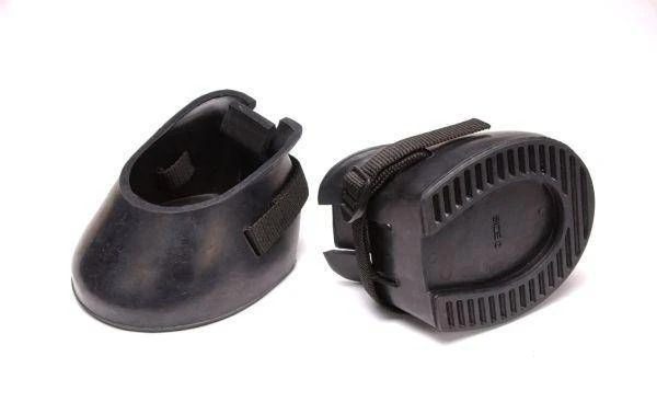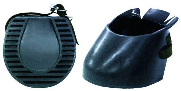 Made to protects hoof while holding in medication and conditioning oils. Made of a rugged PVC with solid bottom. Nylon strap and buckle aid in making a secure fit. Perfect for use as an emergency shoe replacement. Covers hoof wall and entire bottom to protect against splits and nicks when unshod. Measurements should always be taken on a freshly trimmed hoof to ensure proper sizing.