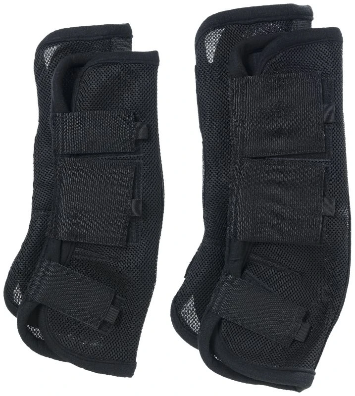 Durable comfort mesh fly boots protect legs from biting insects and provide UV protection to the lower leg. Large “quick grip” closures make for easy on/off. Lower straps have elastic to provide comfort allowing the boot to move with your horse. A flexible spine provides support to keep the boot upright while a neoprene roll, located above the joint, keeps boot from collapsing as the horse moves. Set of 4.