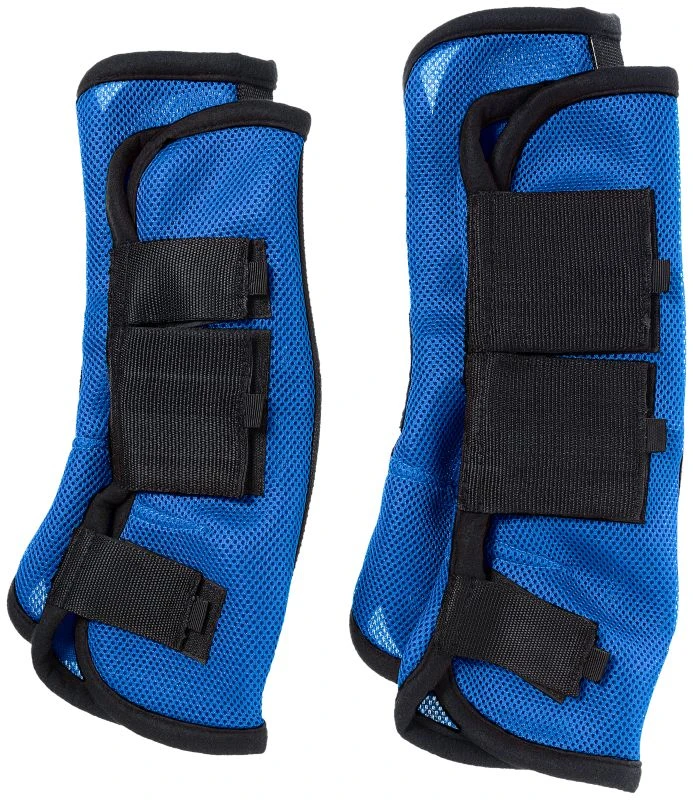 Durable comfort mesh fly boots protect legs from biting insects and provide UV protection to the lower leg. Large “quick grip” closures make for easy on/off. Lower straps have elastic to provide comfort allowing the boot to move with your horse. A flexible spine provides support to keep the boot upright while a neoprene roll, located above the joint, keeps boot from collapsing as the horse moves. Set of 4.